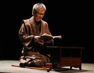 緒形 拳 ひとり舞台「白野」 初演 2006年10月 シアターコクーン他 再演 2007年10月 Bunkamura特設小劇場他 芝居の小道具に、杖、文机を制作いたしました。 杖は、桜材を用い、漆で仕上げました。 文机は、栗材を用い、漆で仕上げました。 文机の前面からは、手打ちの金具のついた引き出しが引き出せます。 背面も後ろであるけれど、裏ではないように仕上げました。 木目、バランスともに品良く仕上がったと思います。 心に残るすばらしい舞台に参加させていただき、感慨深く思っております。